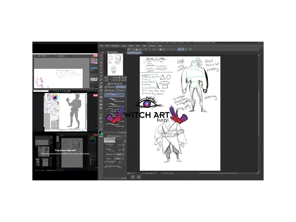 - Téma různá a dle možností - pokud bude venku hezky, můžeme naplánovat studie krajinek, pokud se nám bude chtít tvořit v našem studiu, zaměříme se místo toho na komiksy